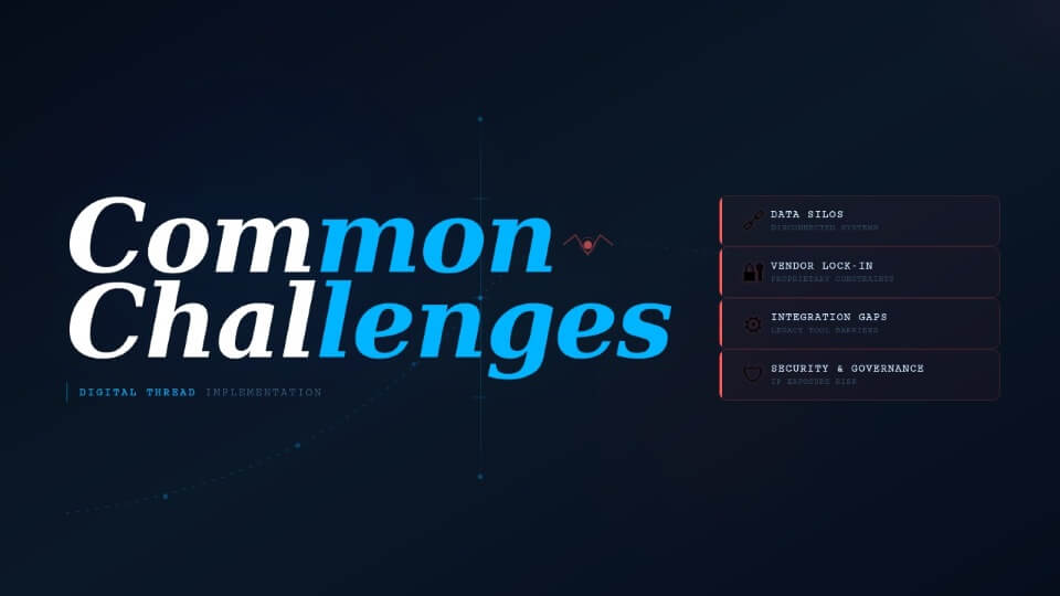While digital thread solutions promise end-to-end visibility across the product lifecycle, enterprises often face significant challenges during digital thread implementation. Let’s discuss these in detail.